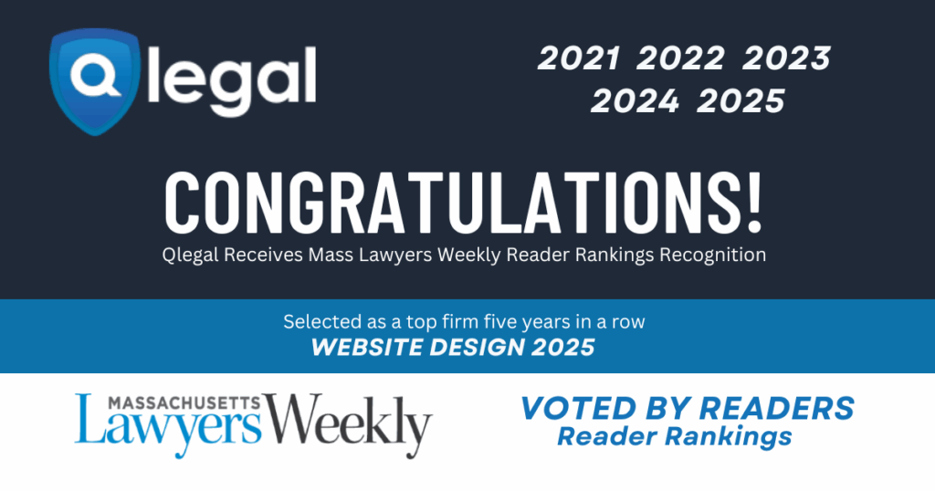 Again we are very honored to have been chosen by the readers of Massachusetts Lawyers weekly as one … [Read more...] about Qlegal Wins Award for Law Firm Website Design in Massachusetts Lawyers Weekly Reader Rankings for 2024 – Four Years Running
